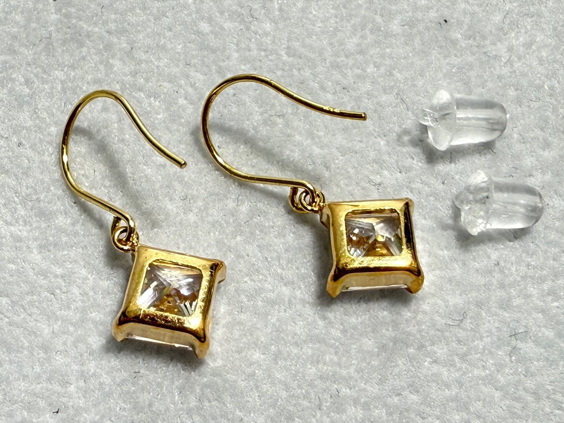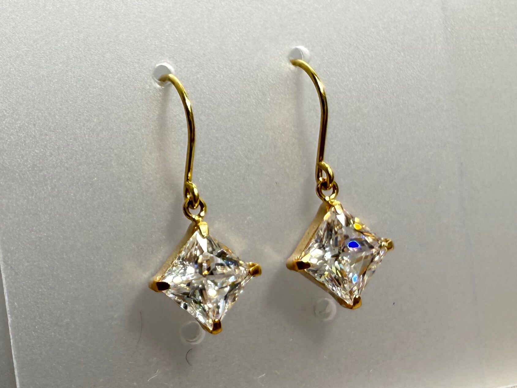 キュービックジルコニア スクエア K18 ピアス フックピアス
