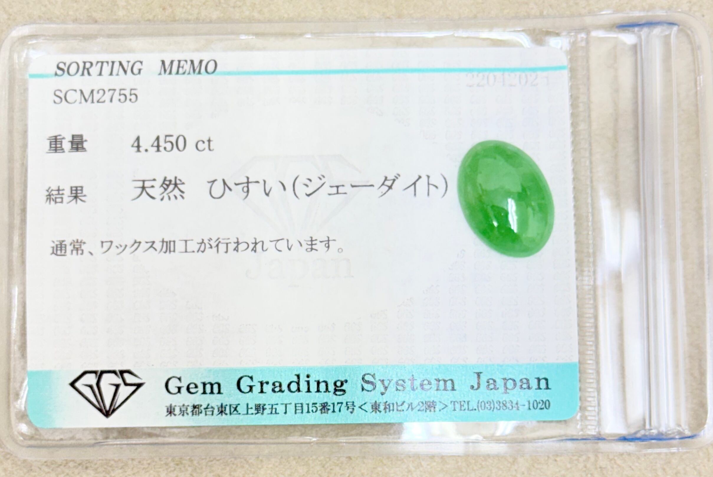 極美品! ひすい 4.450ct ソ付 ルース(LA-7406)