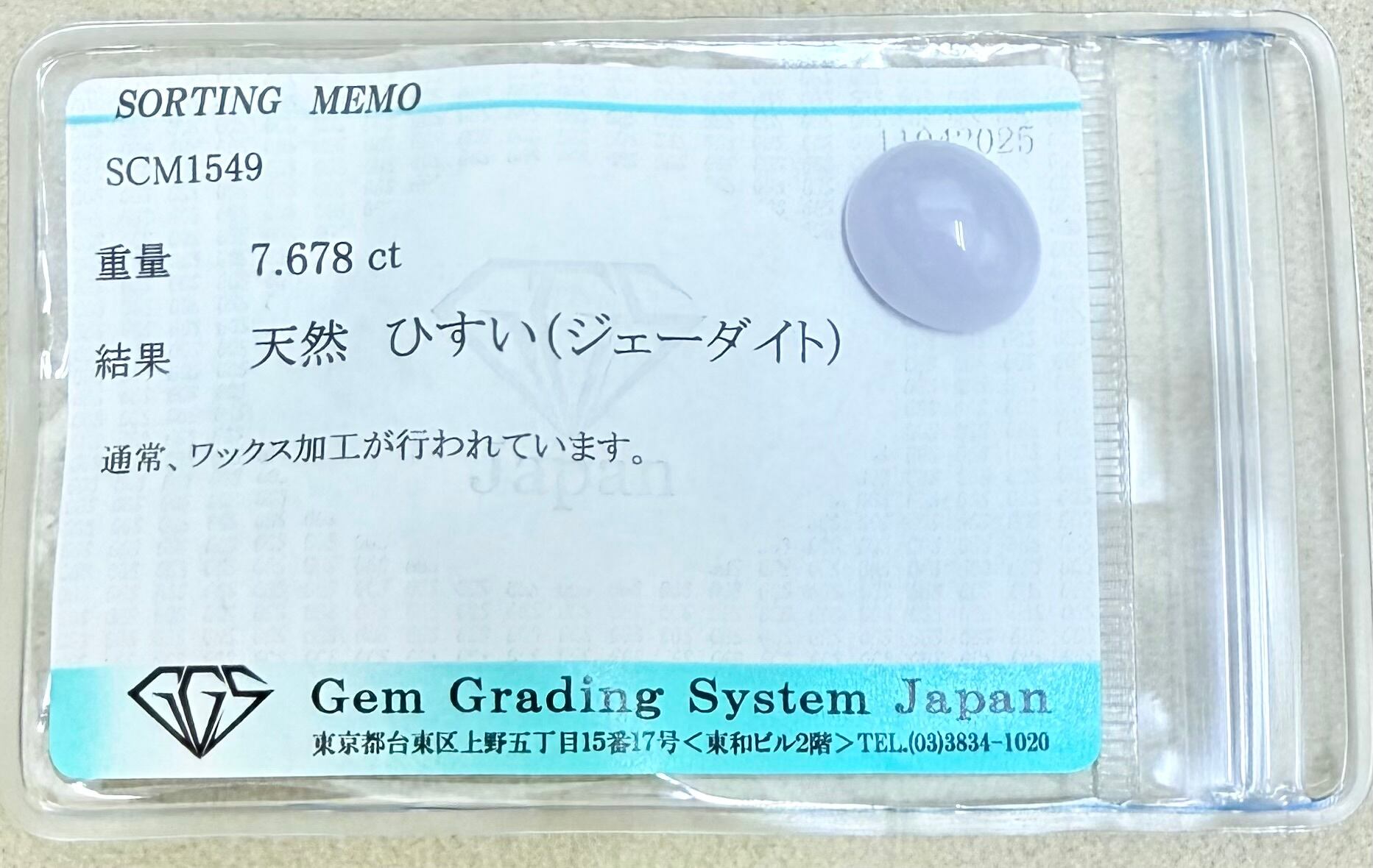 極美品! ラベンダーヒスイ 7.678ct ソ付 ルース(LA-7464)