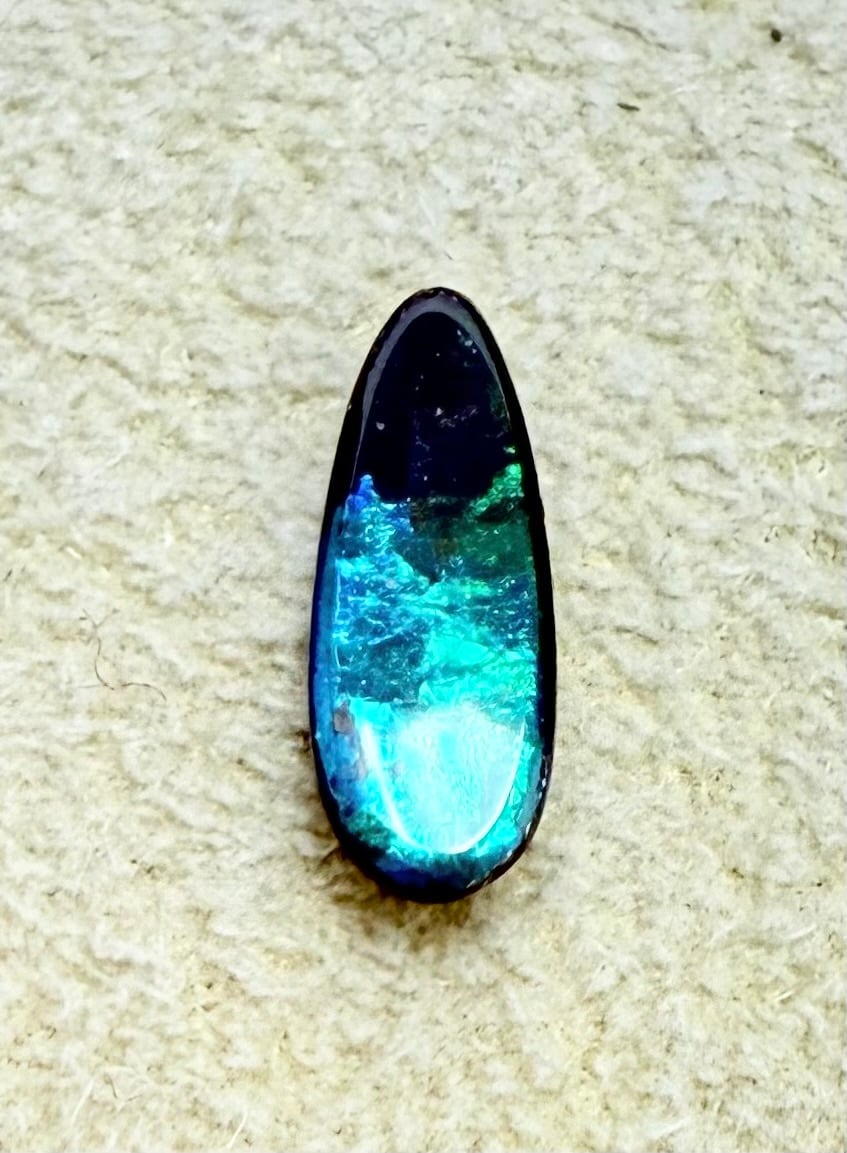 青から緑にかけての遊色効果がステキなボルダーオパールです。