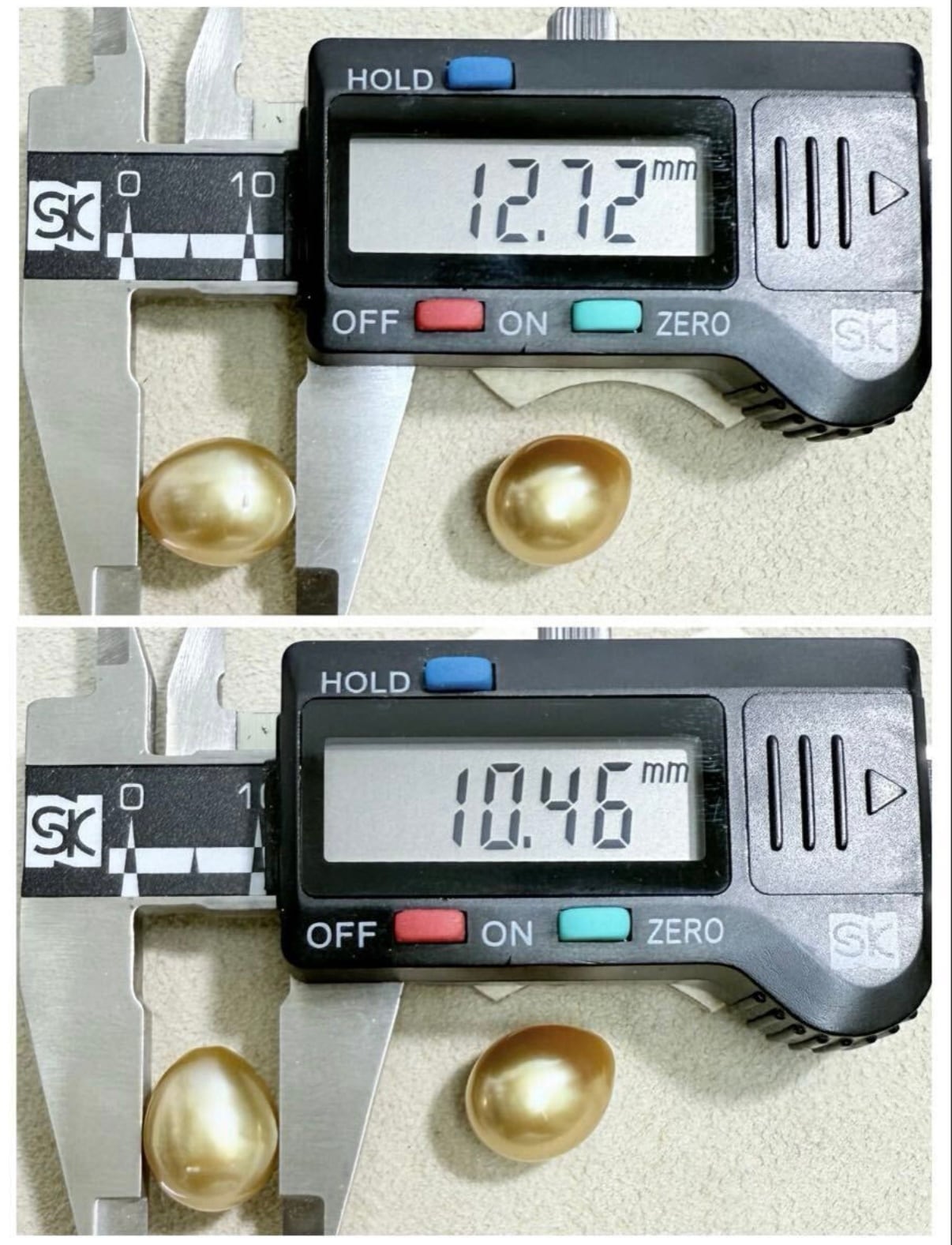 パーフェクトドロップのゴールデンパールのピアスを作りました。