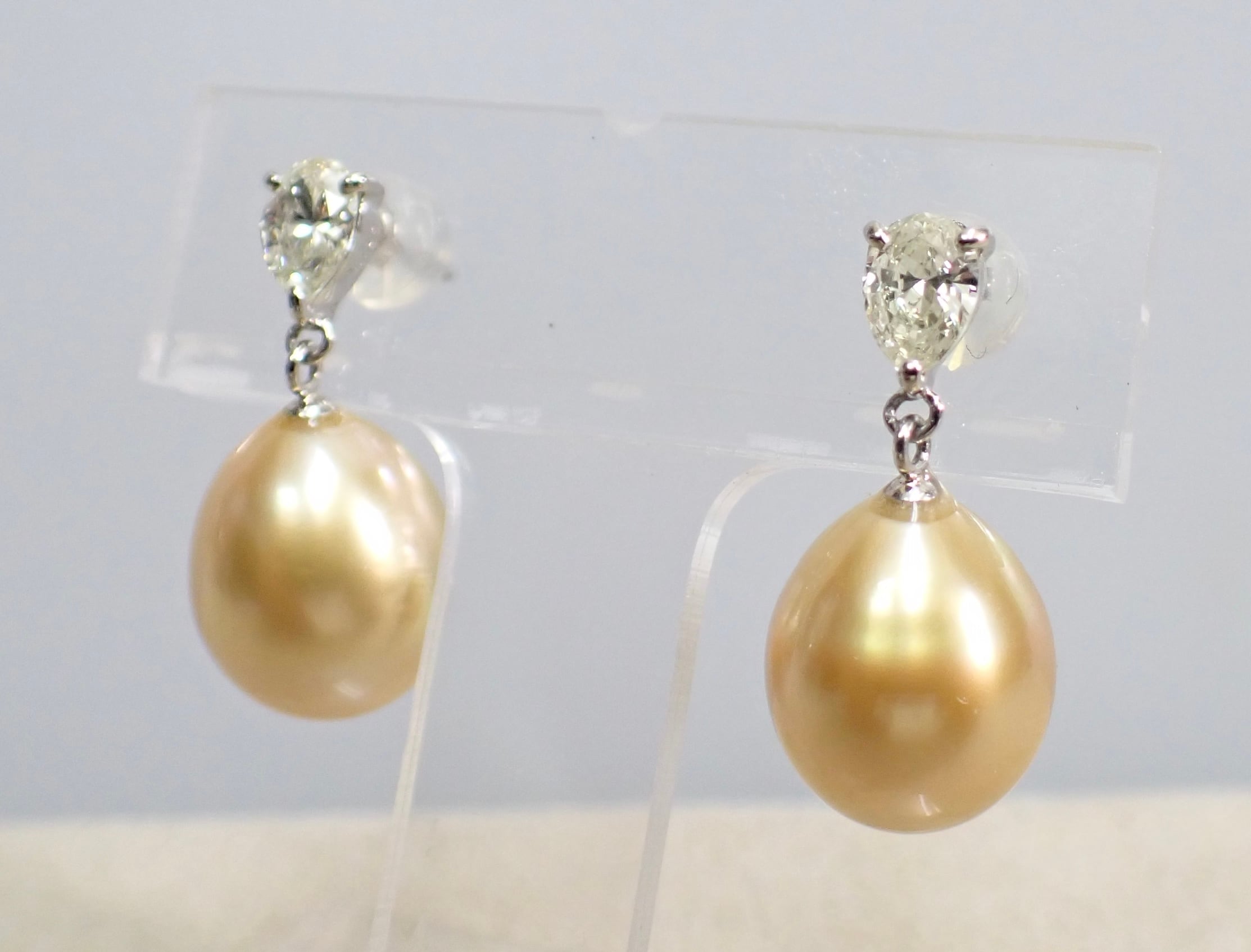 ゴールデンパール 白蝶真珠 南洋真珠 ダイヤモンド ペアシェイプ Pt Pt900 ピアス