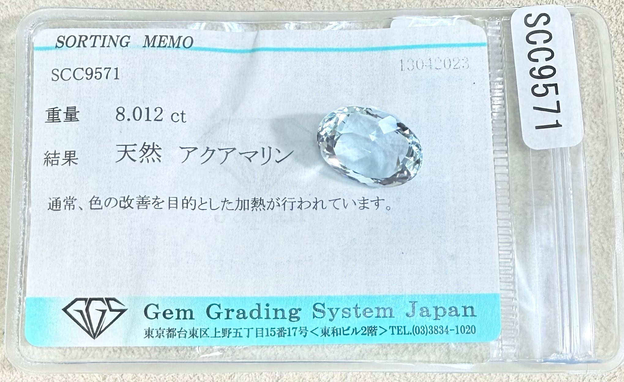 極美品! アクアマリン 8.012ct ソ付 ルース(LA-7864)