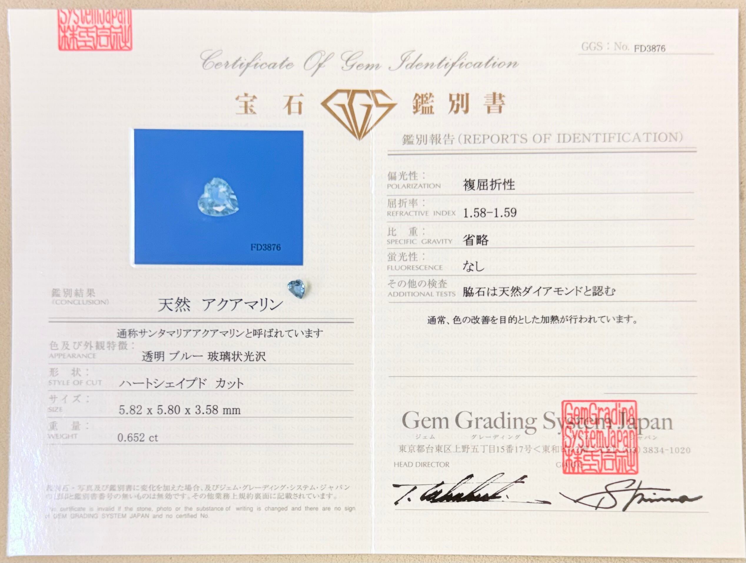 サンタマリアアクアマリン ハートシェイプ ルース