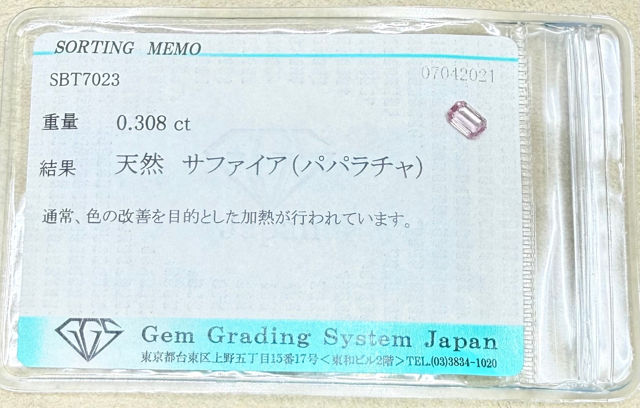 美品! パパラチャサファイア 0.308ct ソ付 ルース(LA-7886)