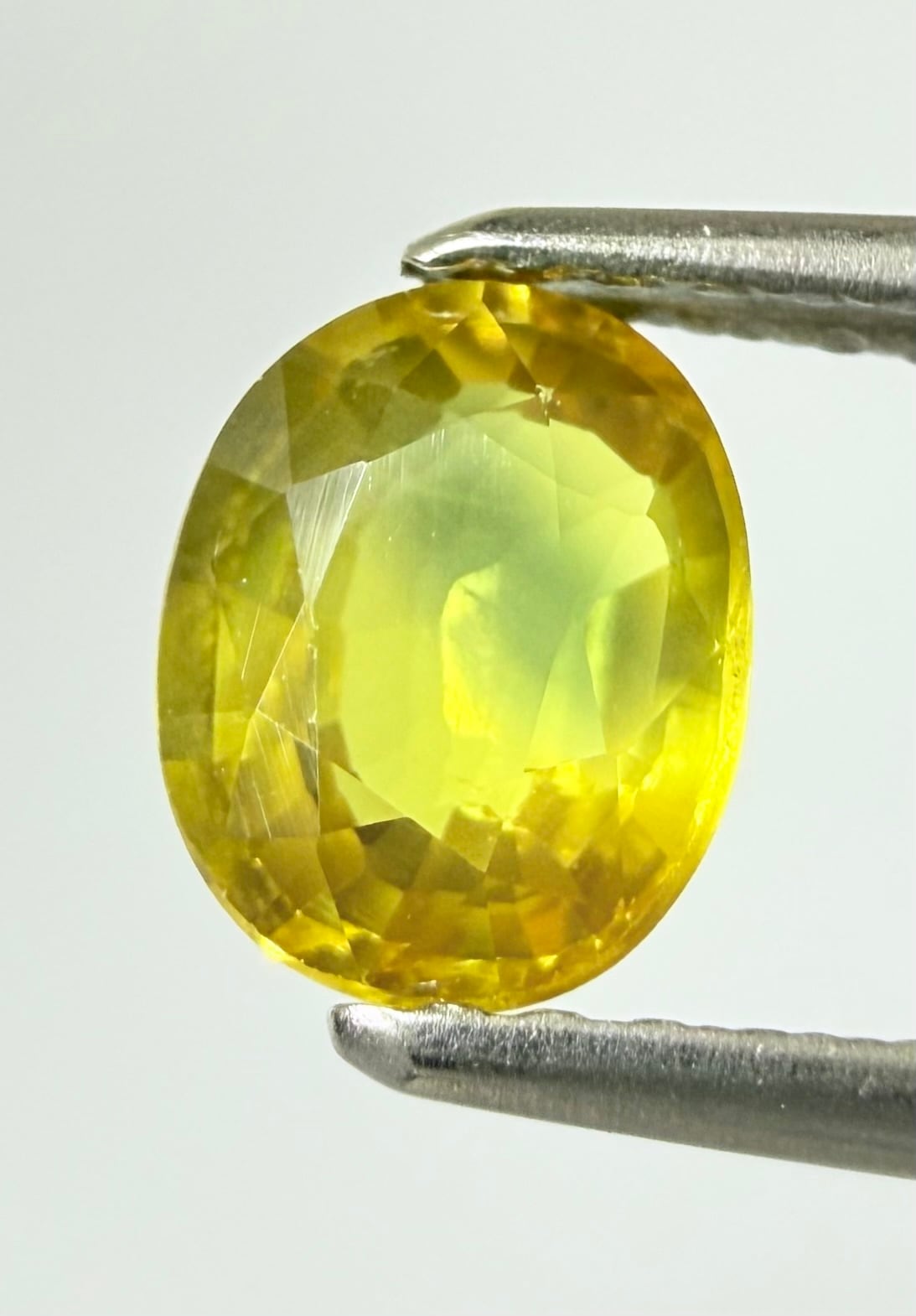 しっとりしたイエローに深めのブルーのバイカラーサファイアです。