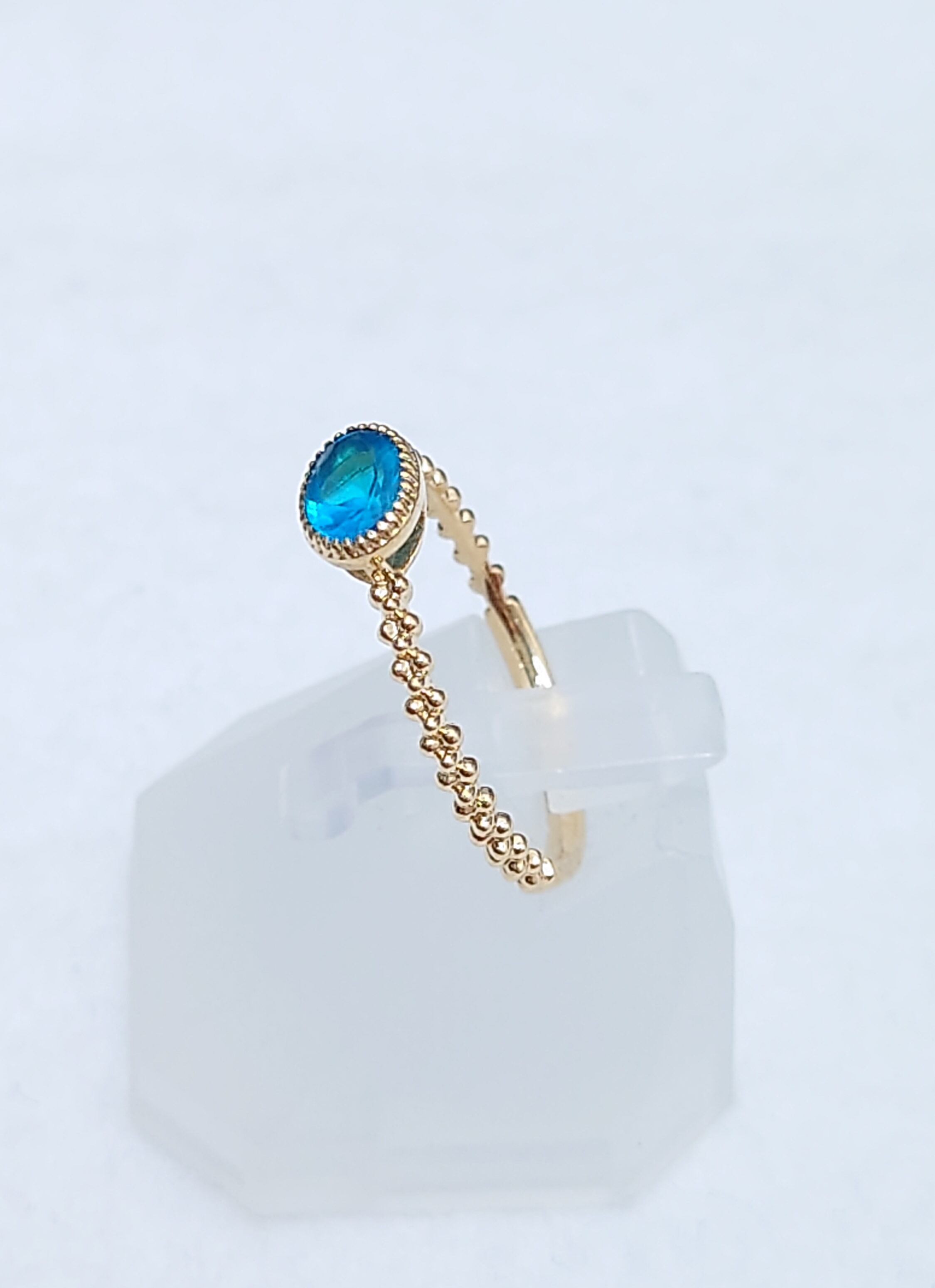 ネオンブルーアパタイト 0.43ct オーバル K18 リング(LASR676)