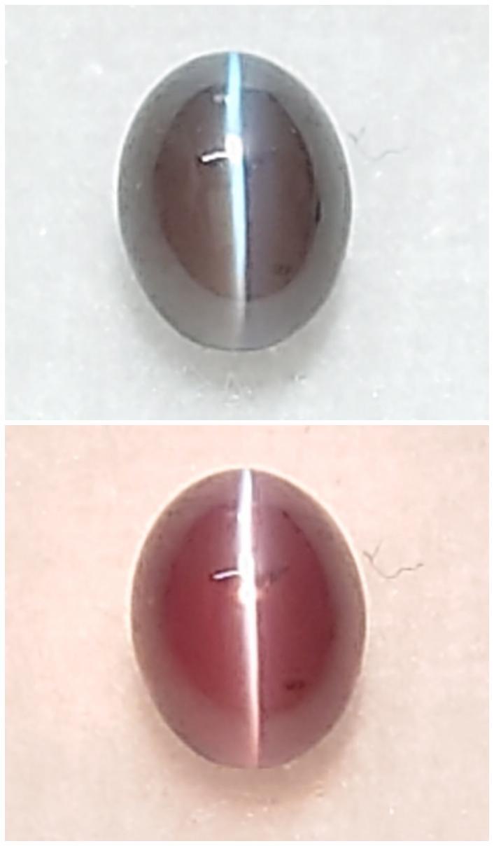 目がしっかり出て、色の変化もあるアレキサンドライトキャッツアイです。