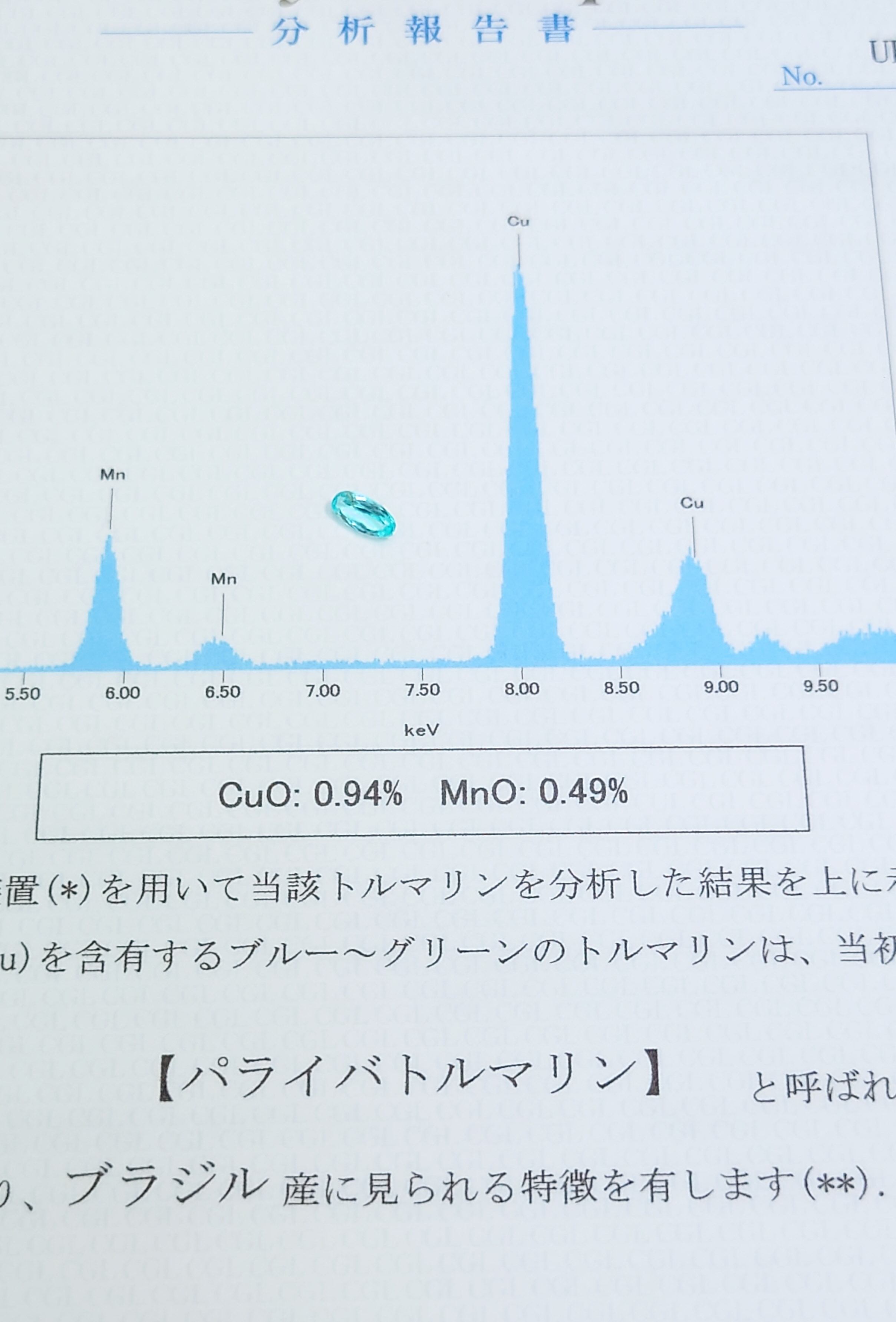 中央宝石研究所 ( CGL ) パライバトルマリン鑑別書付