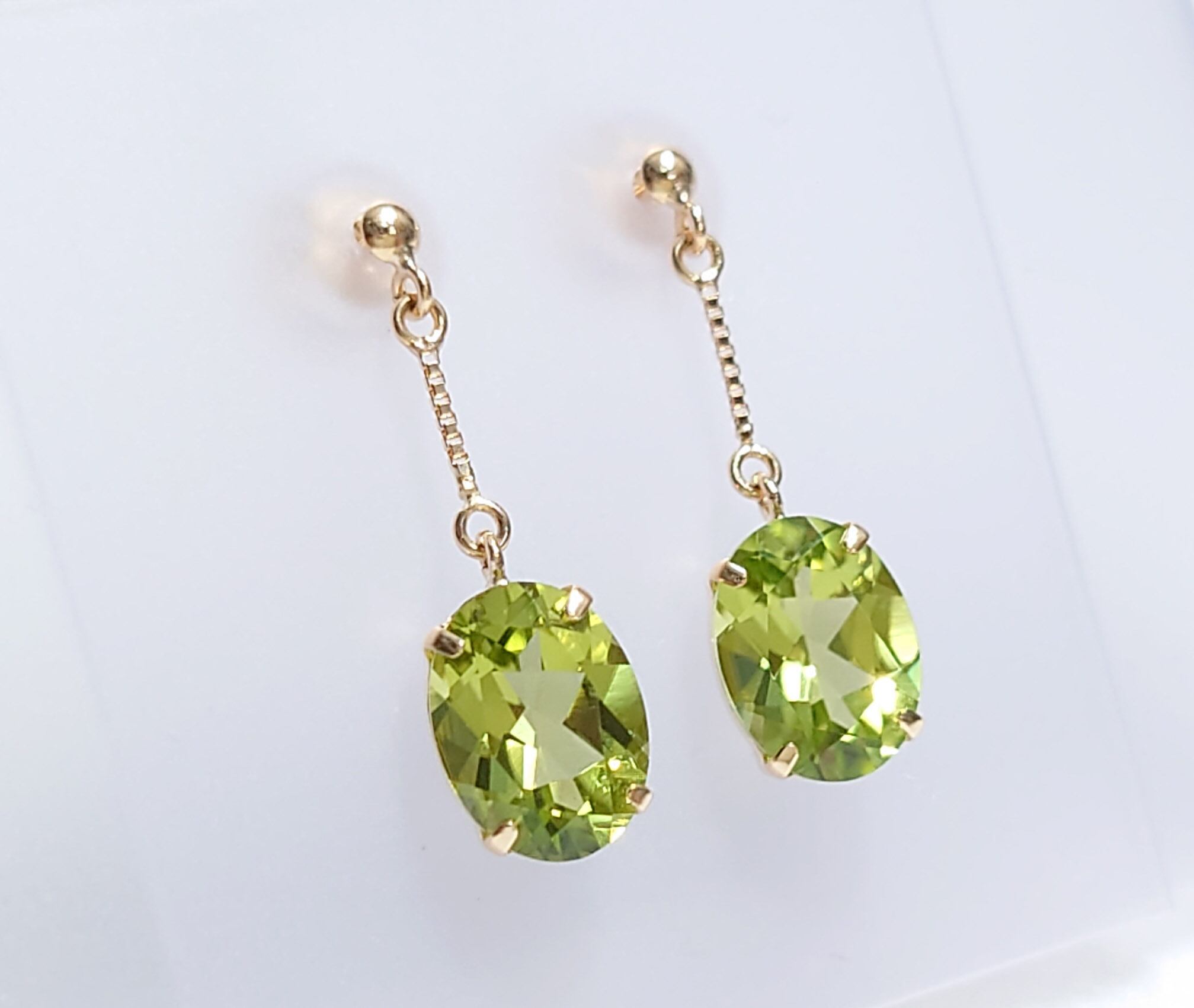 ペリドット オーバル K18 ピアス ロングピアス