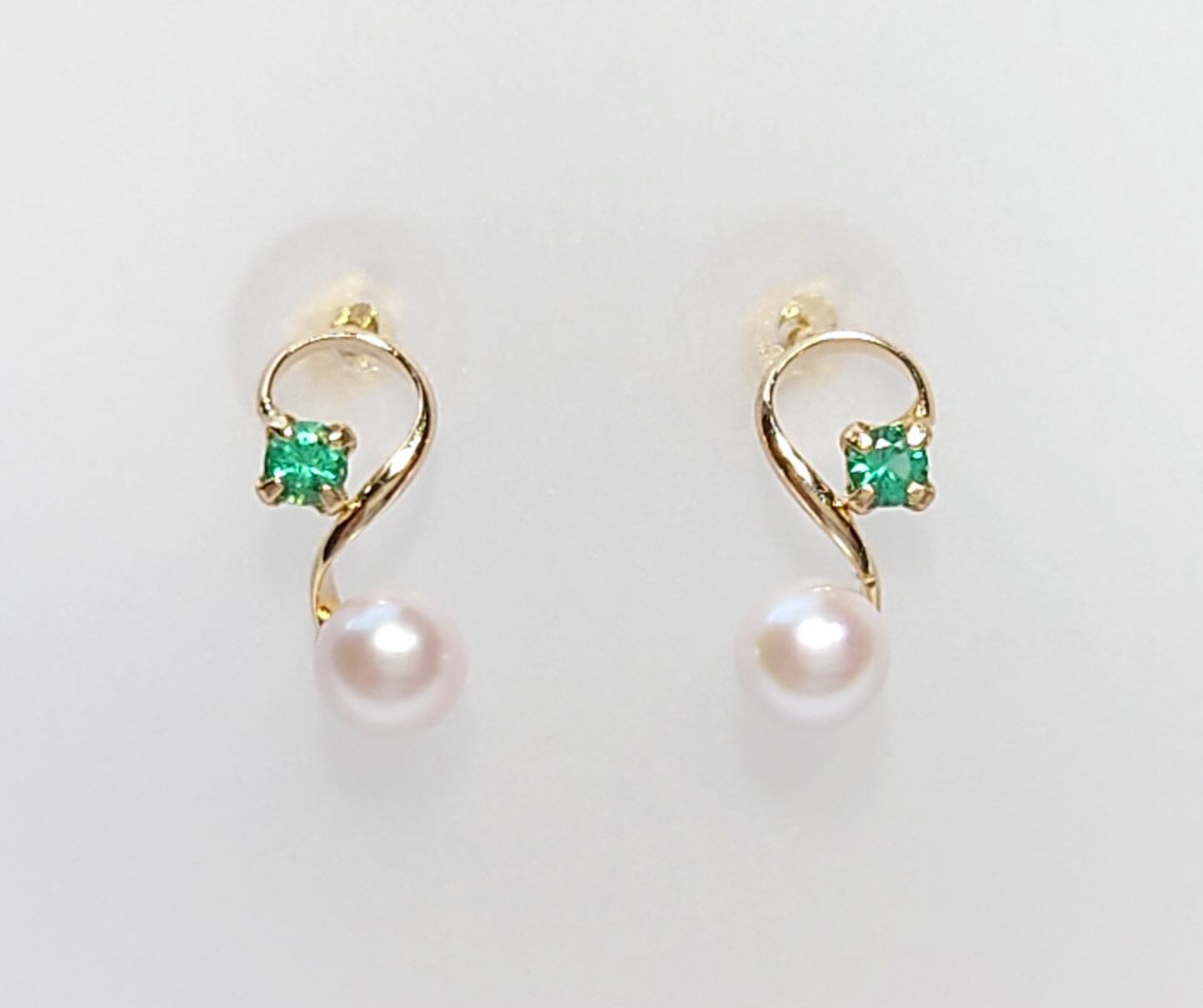 アコヤ真珠 パール エメラルド K18 ピアス