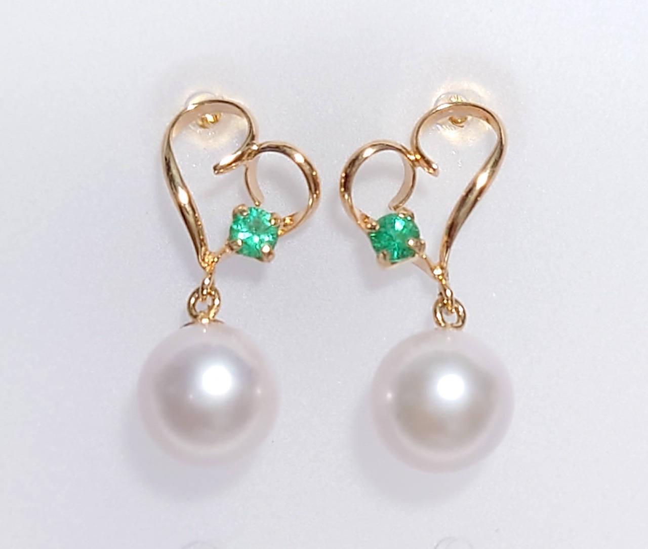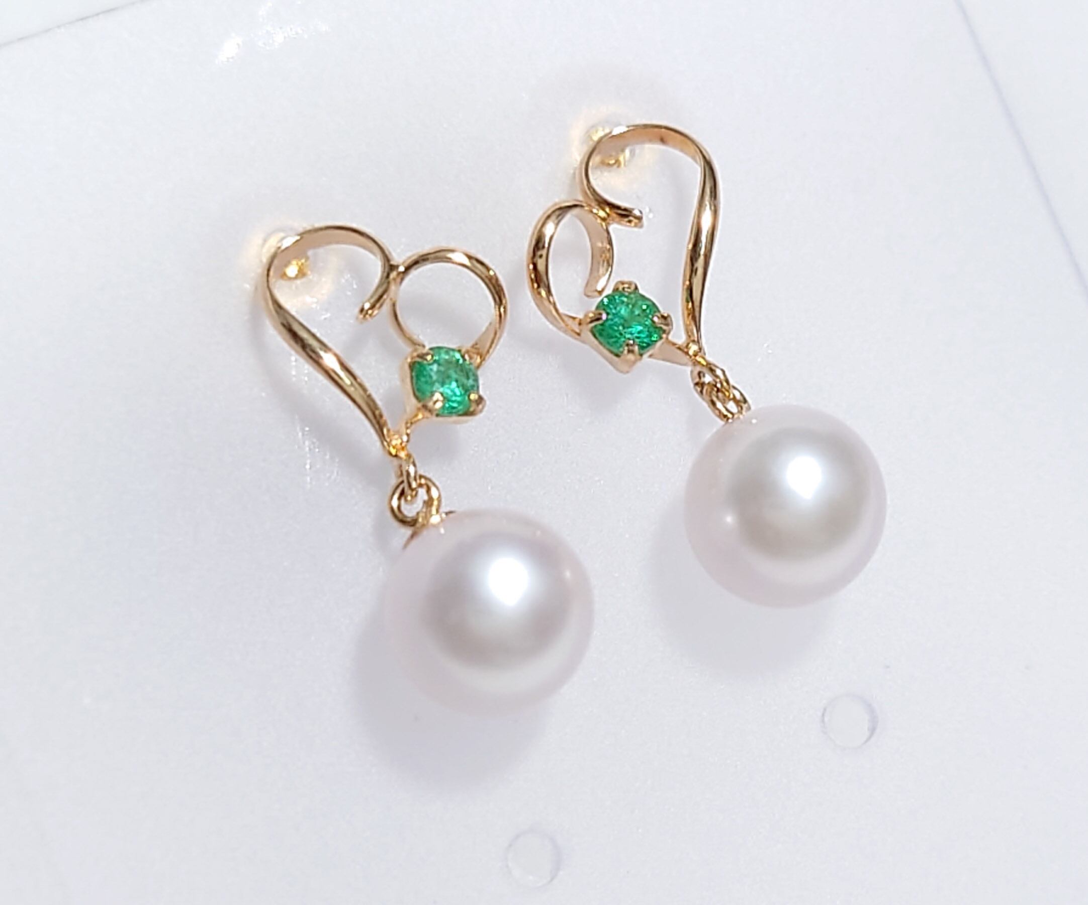 アコヤ真珠 パール エメラルド K18 ピアス ロングピアス