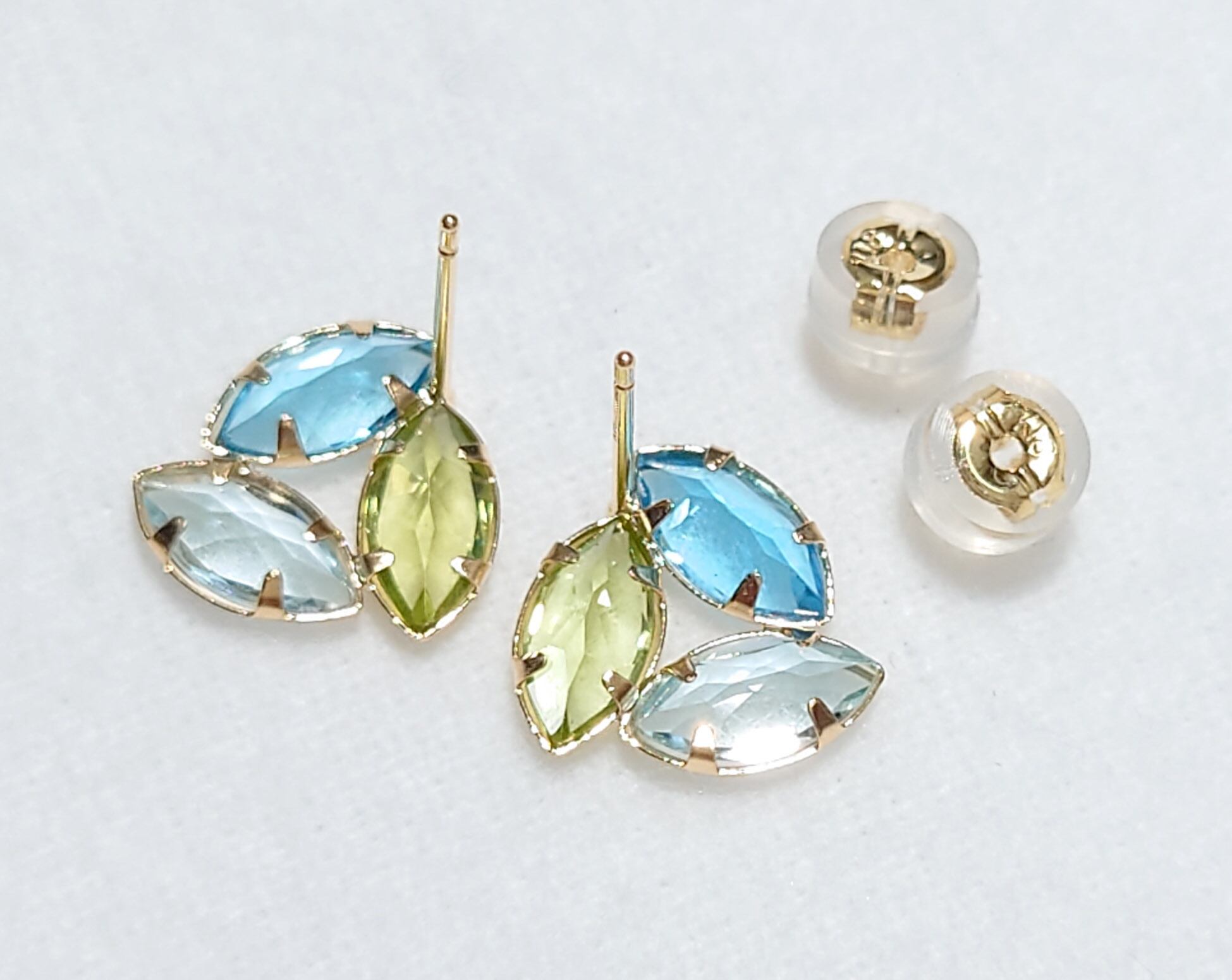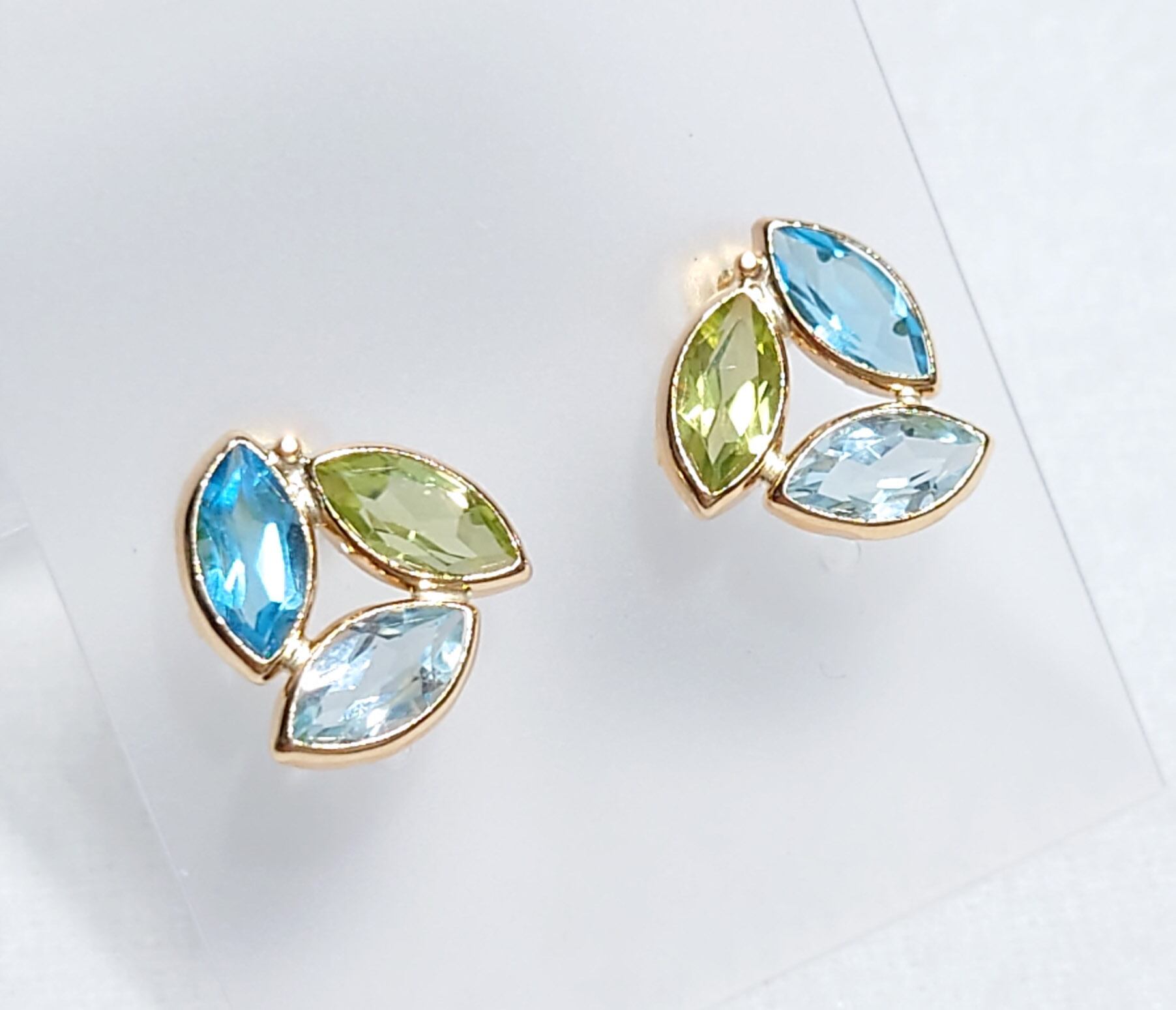 鮮やかなブルートパーズと爽やかなブルートパーズ、優しいペリドットの素敵なピアスです。