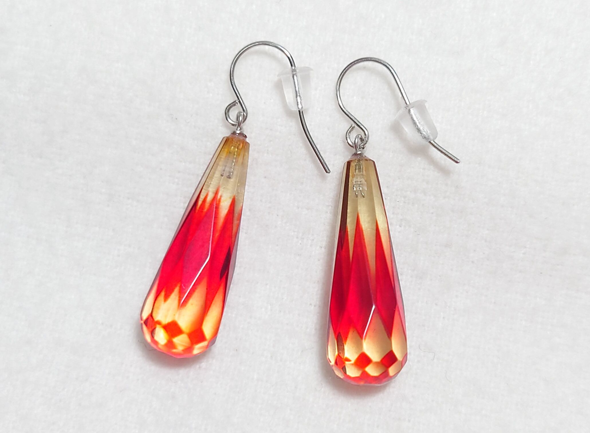 コハク 赤染 江戸切子風 カット K18WG ピアス フックピアス