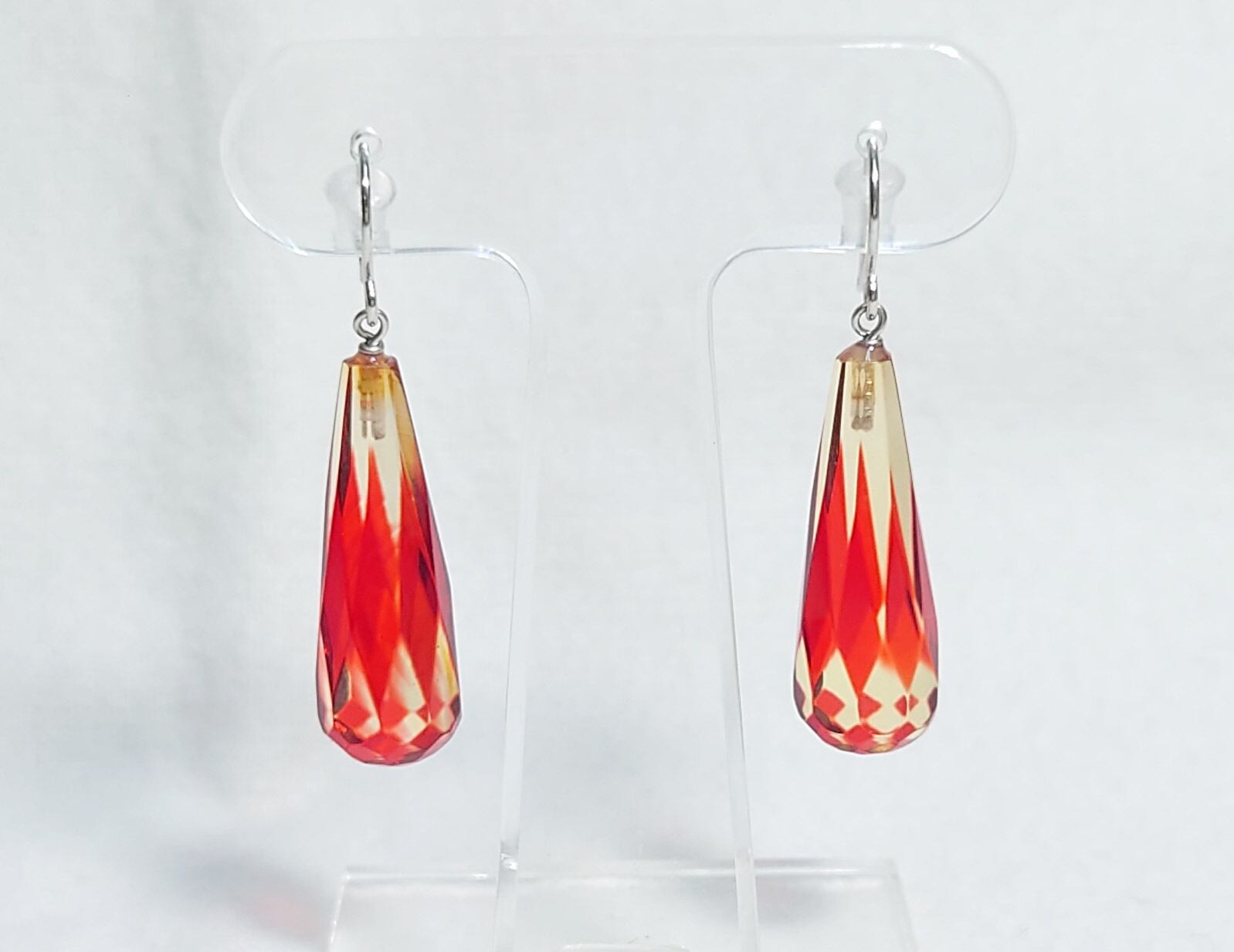 江戸切子を彷彿させる素敵なコハクのピアスです。