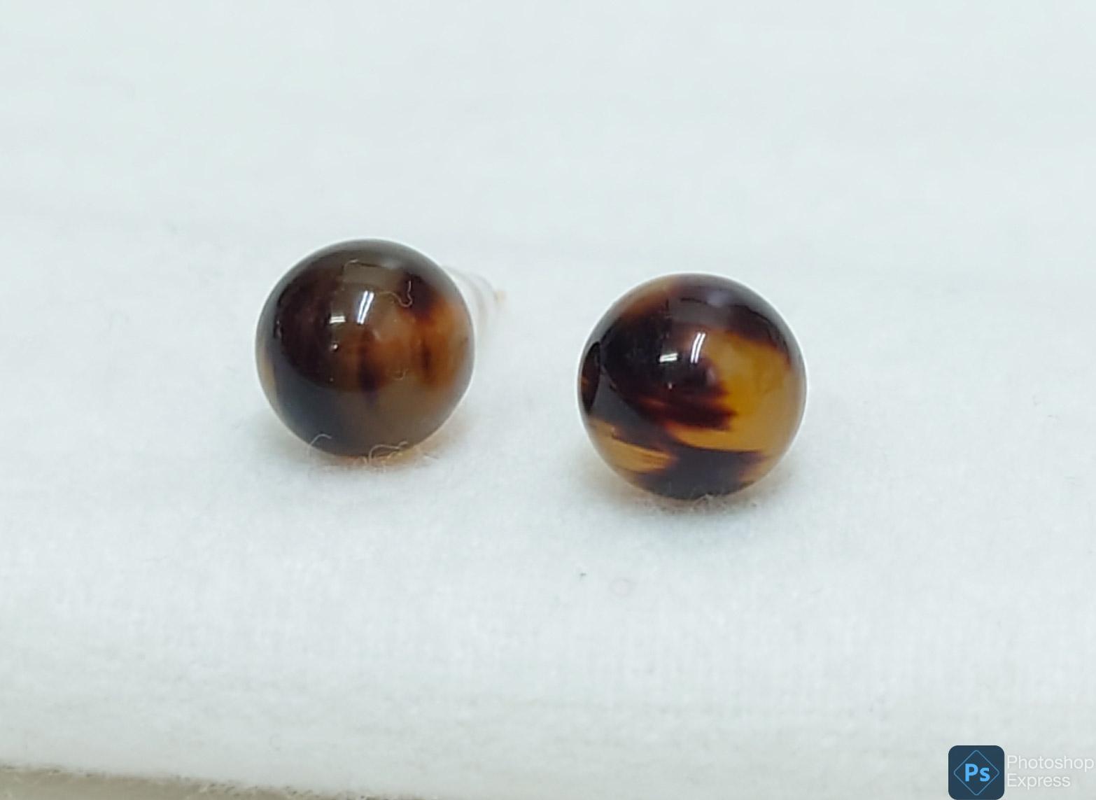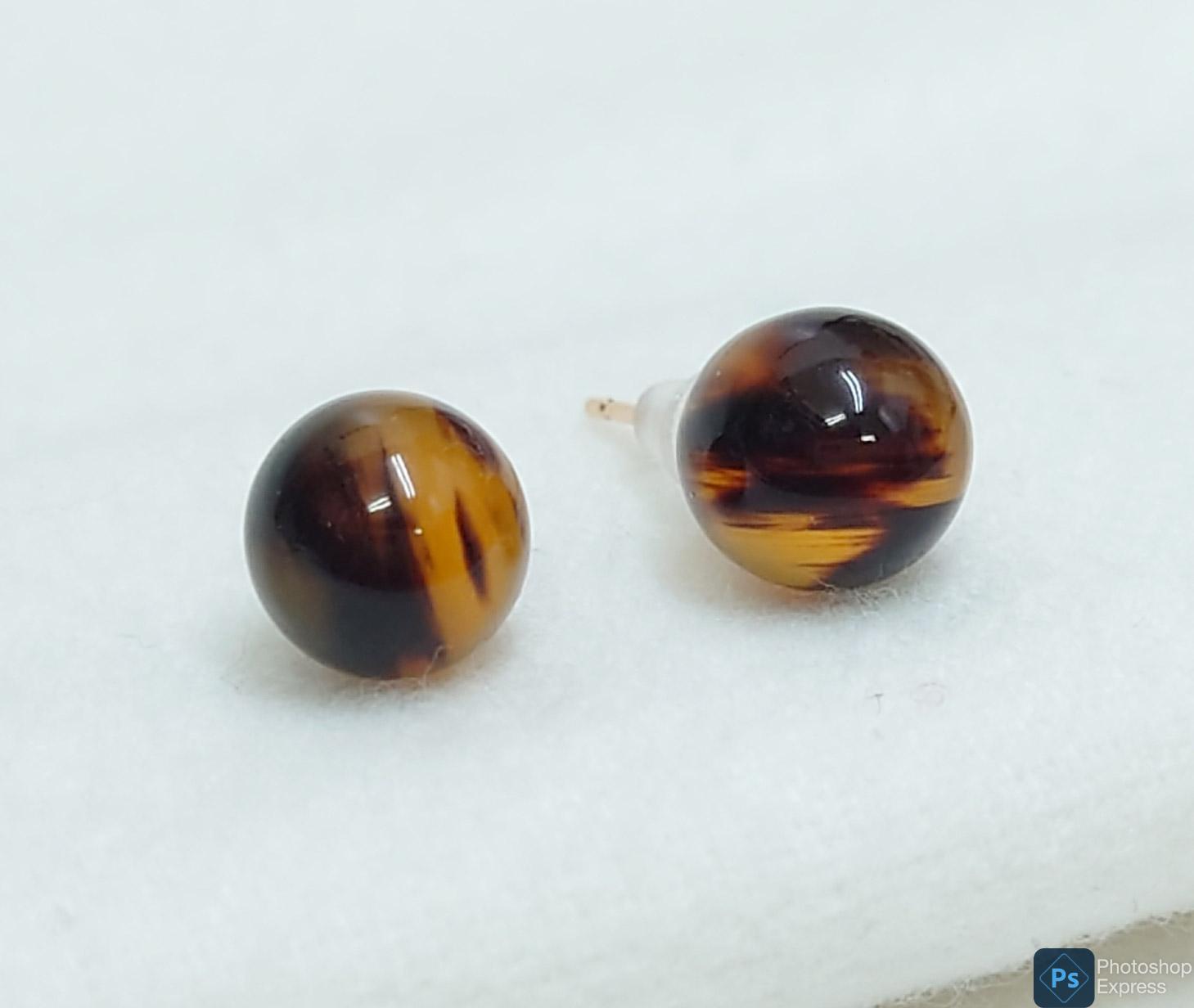 べっ甲の丸珠ピアスです。