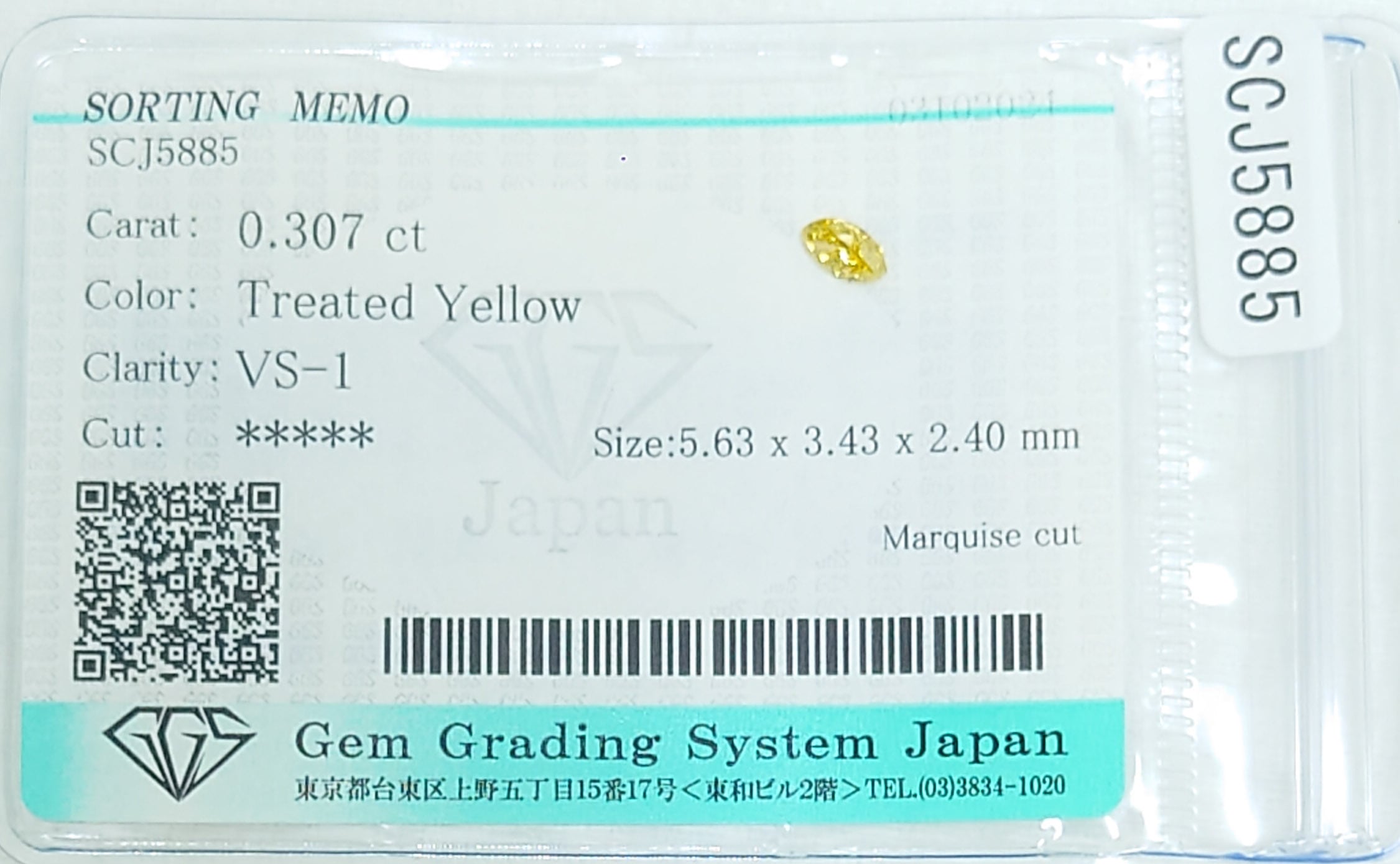 トリート! イエローダイヤモンド 0.307ct ソ付 ルース(LA-7068)