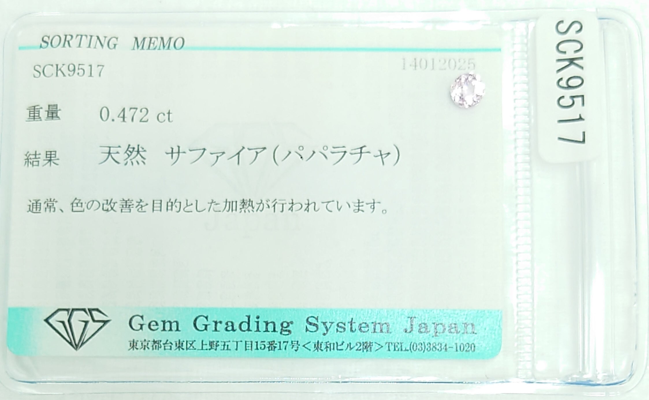 極美品! パパラチャサファイア 0.472ct ソ付 ルース(LA-7254)